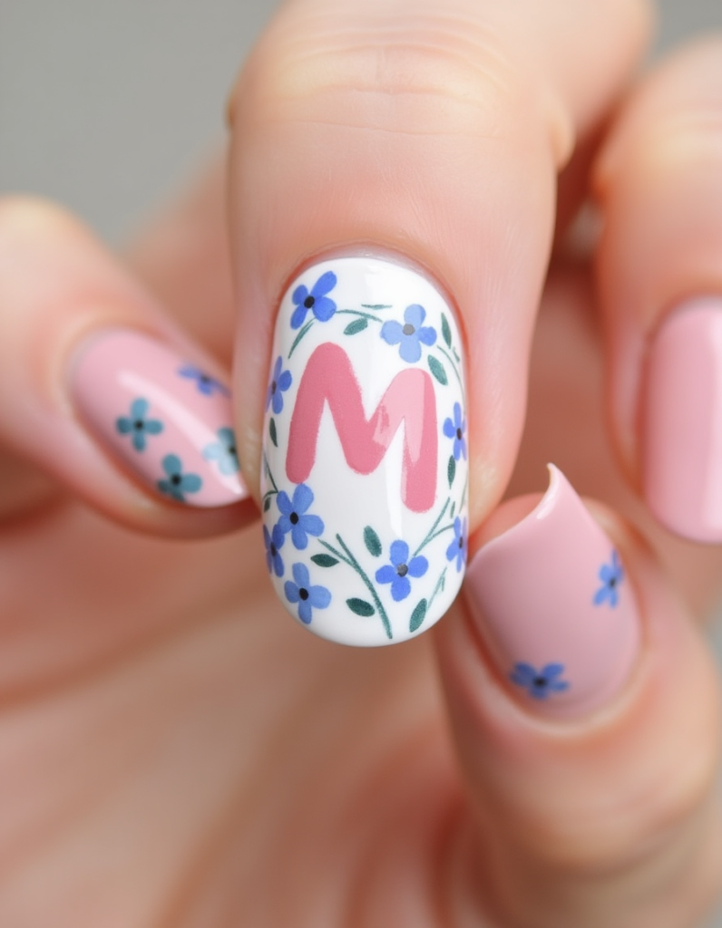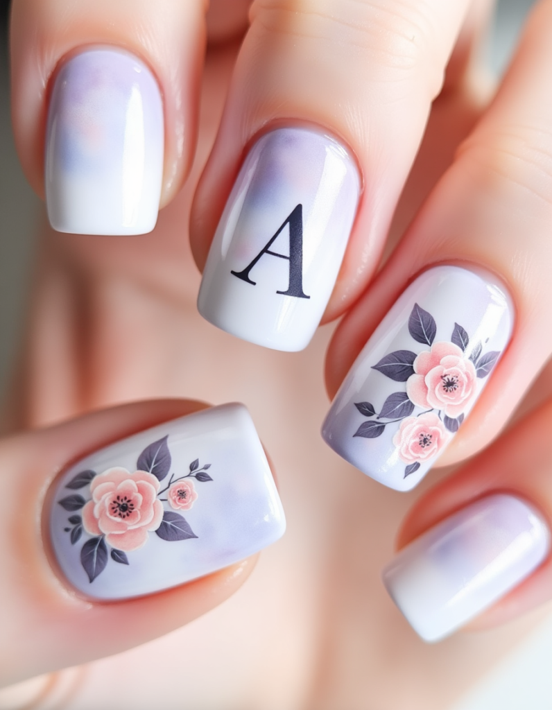 2. Floral Typography: This design incorporates delicate floral patterns interwoven with letter motifs. Opt for a soft color palette that features periwinkle and blush tones, making it a great choice for those who appreciate a bit of whimsy.