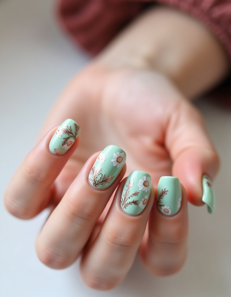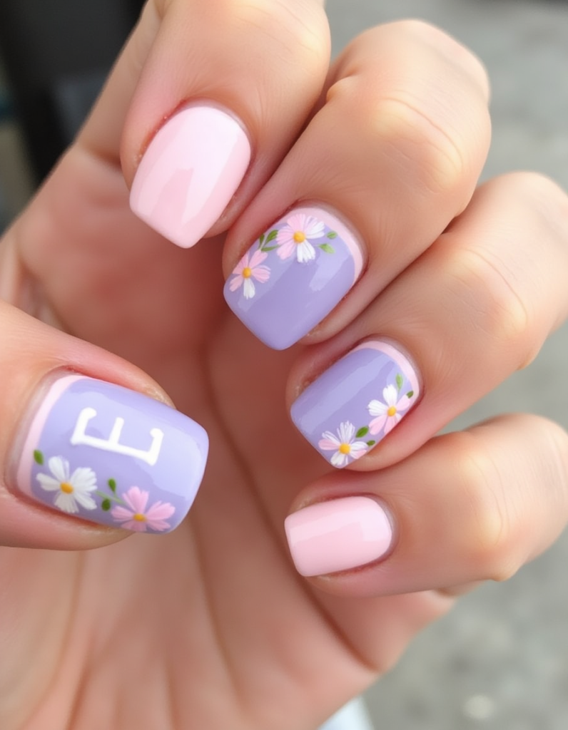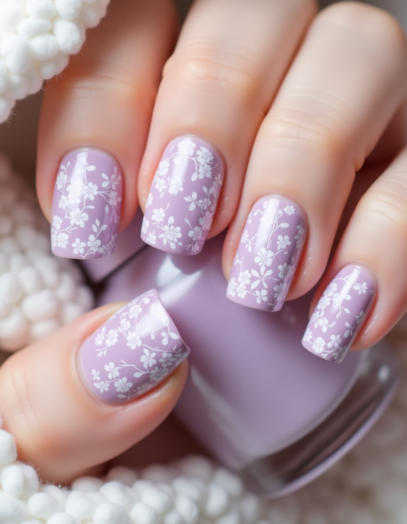 9. Floral Stamping: Utilize stamping techniques to easily add intricate pastel floral patterns over a soft base color. This design suits anyone looking for elegance without the excessive time commitment.